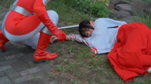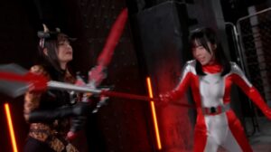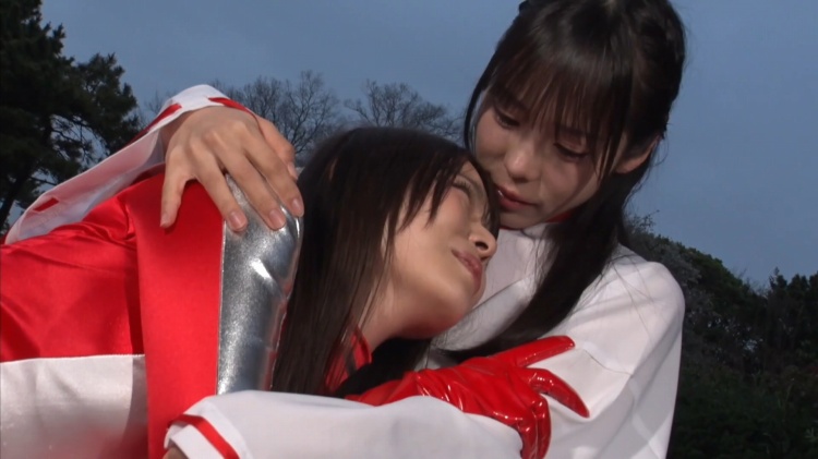 そして何といっても最期のヤラレシーン。屋内スタジオでのランサーと剣との対峙で、徐々に追い込まれていき、ヒロイン3人に挟まれてしまい、思わず「ひかり、やめて、痛い、お願い」と、レッドをまた騙そうとするが、「そんな言葉はもう通用しないわ、これで終わりよ」と必殺技を発し、腹部に炎の光線がクリーンヒット。苦しそうな表情と、ドスの効いた悲鳴を発し、持っていた剣を放り投げて、足を広げ、バンザイのポーズで苦悶に満ちた表情ののち爆死した。まさに、自分のせいで姉を失ってしまったというトラウマを断ち切り、ヒロインとして大きく成長したことがわかる戦いだったと感じさせるが、いままでヒロインだった存在がこのように勧善懲悪に徹し壮絶にヤラレること、そして、表情や声、長めの尺であったことが近年のZEN作品の中では歴史的に良いシーンとなった。思い切って演じてくれた奈良平さんに感謝したい。