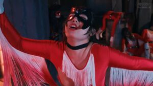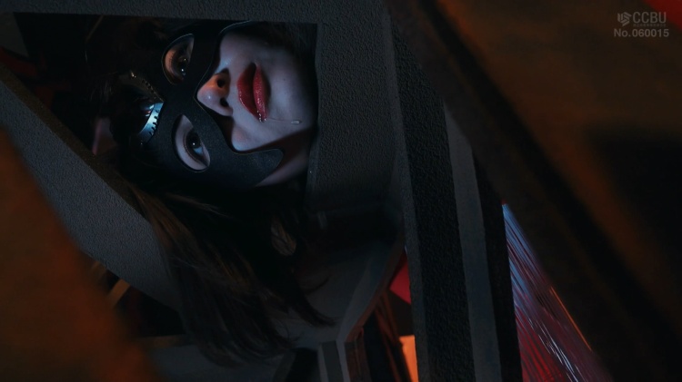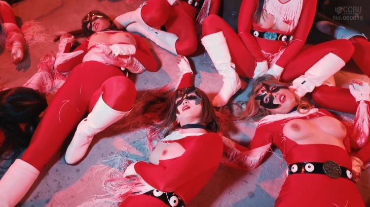 序盤のアクションシーンは、天気がそれほど良くない中、しじみさん演じる女幹部率いる部隊と、スーパーヒロインたちのバトル。乃南ゆいさん&永瀬愛菜さんさん樹咲早姫+正体不明の黒マスク女戦闘員。黒マスクはおそらくウィッグもつけており、アクションよりの女優さんと思うが正体不明。ヒントはキャストの「富士乃りの 蒼穹あお 咲桃ちの」さんにありか。終盤の顔隠し上級女戦闘員は藤岡範子さんと思われるが、可能性としては、おみやさん?佐原麻衣子さん?とかか?わからない。拉致るときの女戦闘員も乃南ゆいさん&永瀬愛菜さん。中盤以降、女戦闘員が揃ってからのバトルは、影も長くなり、結構午後遅めの撮影となったようだ。いままでにもあったような積み重なりや、女戦闘員通しをぶつけるなどのヤラレアクション、および長めのヤラレ後の彼女らの哀れな姿をじっくり堪能できる。また、洗脳シーンでは、周辺の女幹部はかなり濃い目のメイクで一見誰だかわからないほど。生着替えシーンは、カメラワークや照明がかなり良く、コスチュームを付ける様子がエロエロで、女戦闘員シリーズで、このシーンが好みな界隈の方にはとても良い仕上がりとなっていると思います。それにしてもこの白いそうめんのようなアクセントはいいですね。真っ赤なコスチュームや目玉のようなベルトも、とてもレトロな印象で。